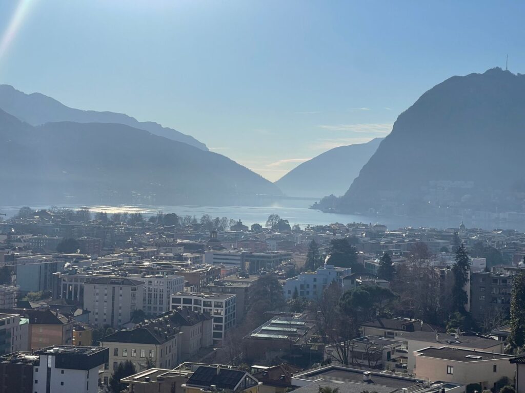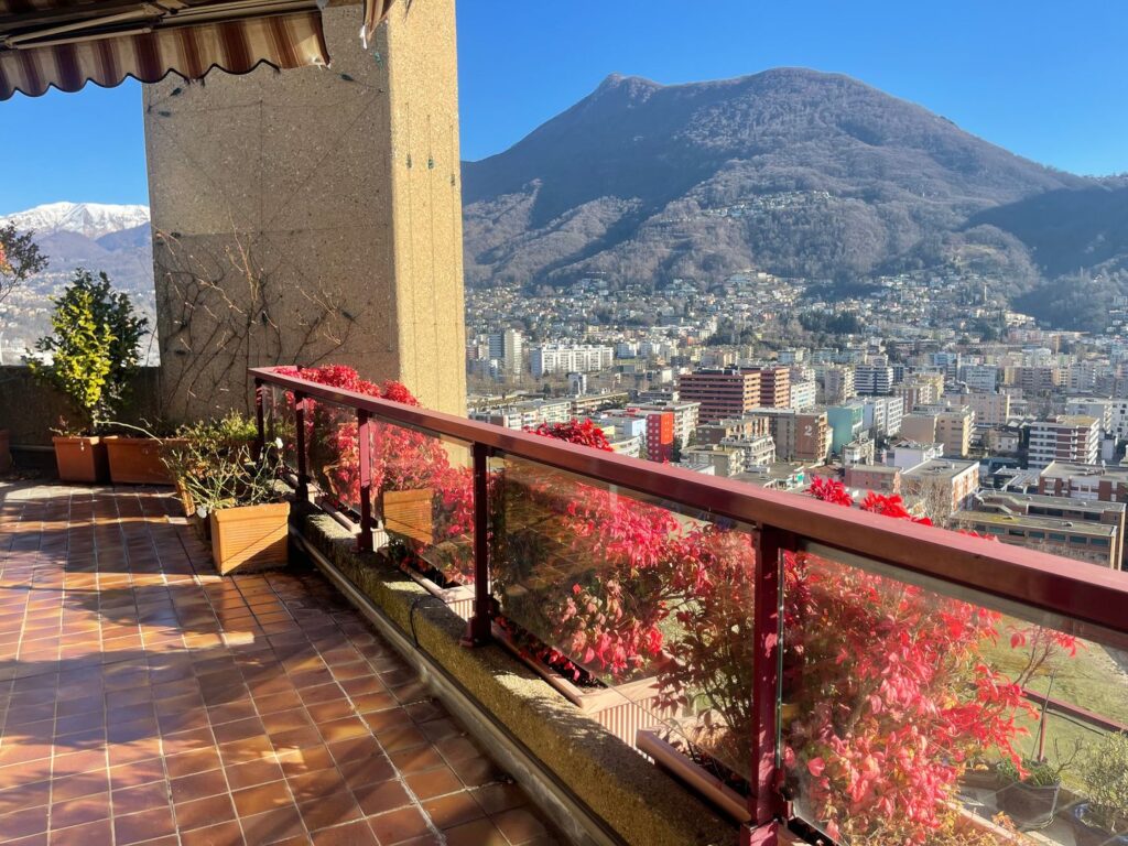 La proprietà é situata al 4°ed ultimo piano con esposizione sud-est pertanto estremamente soleggiata e con vista aperta sulle montagne prospicienti che spazia fino al lago di Lugano ed il San Salvatore.