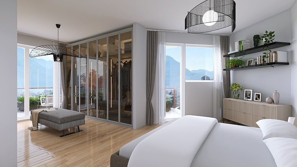 La zona notte è composta da una camera padronale con bagno en-suite, 2 camere da letto, 2 bagni, lavanderia e ampi balconi.