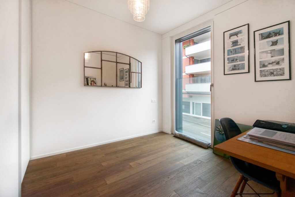 Punto di forza dell’appartamento è la splendida terrazza di 15 mq, dotata di pannelli in vetro scorrevoli che la trasformano in un accogliente winter garden, fruibile anche durante i mesi più freddi.