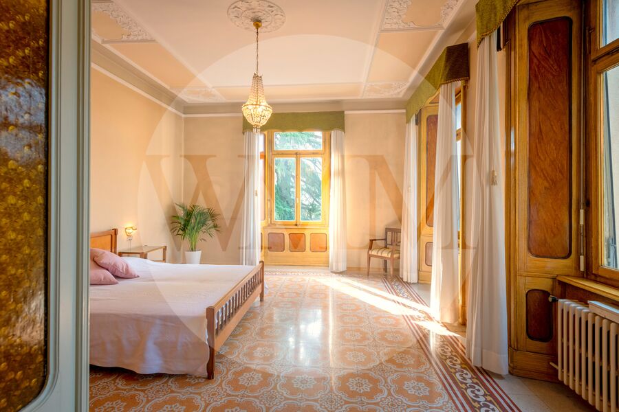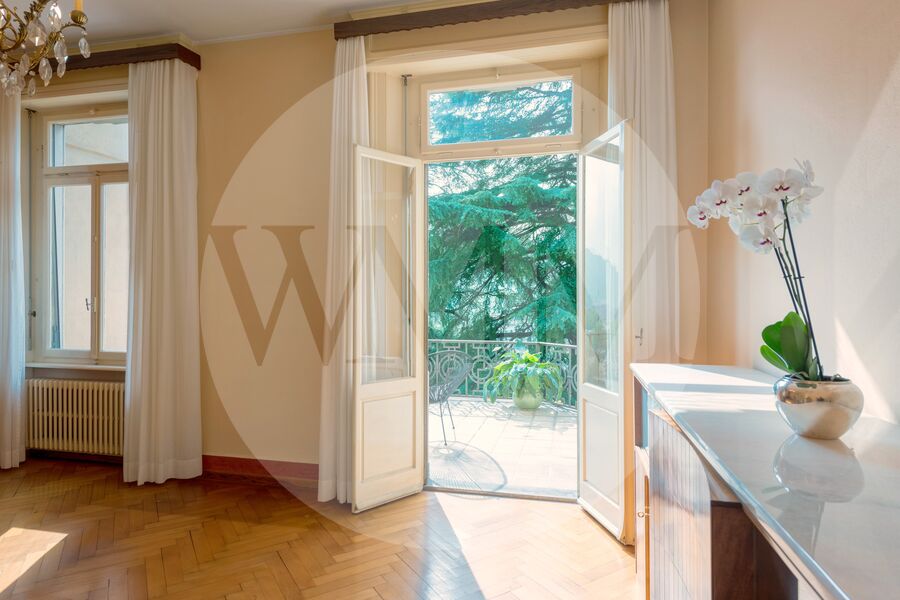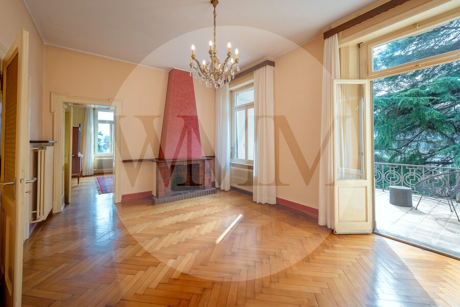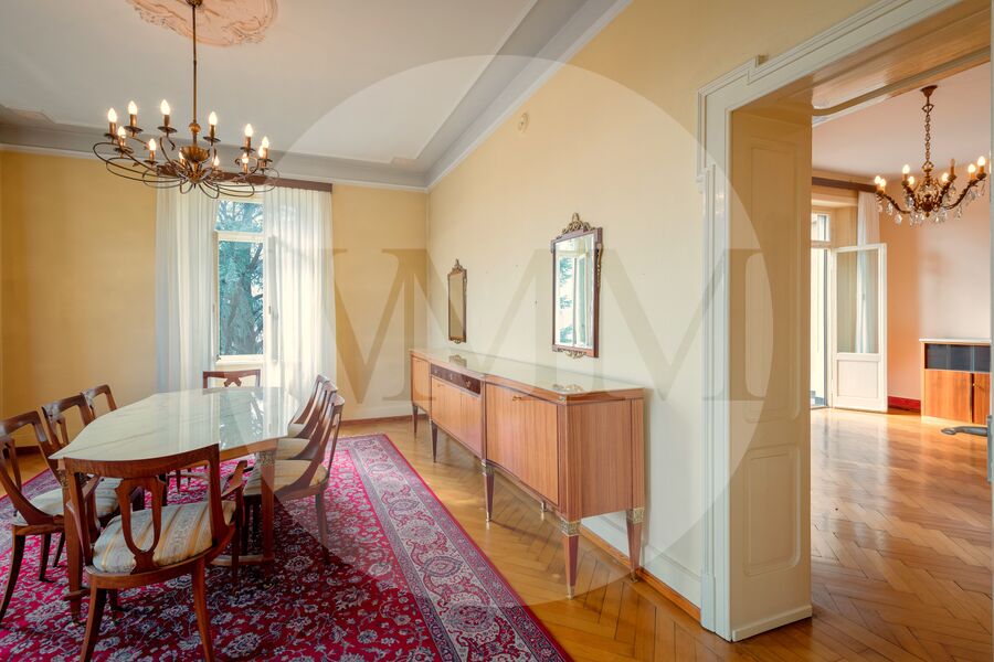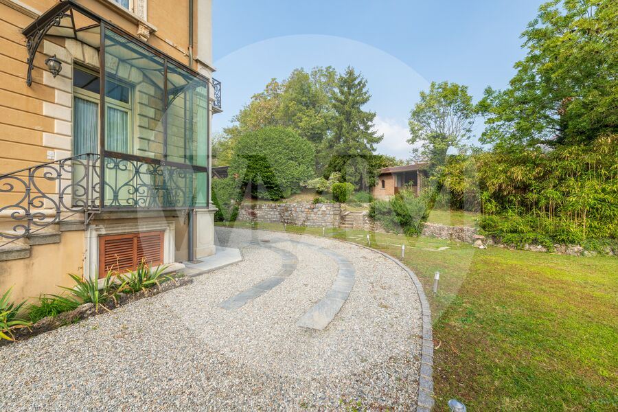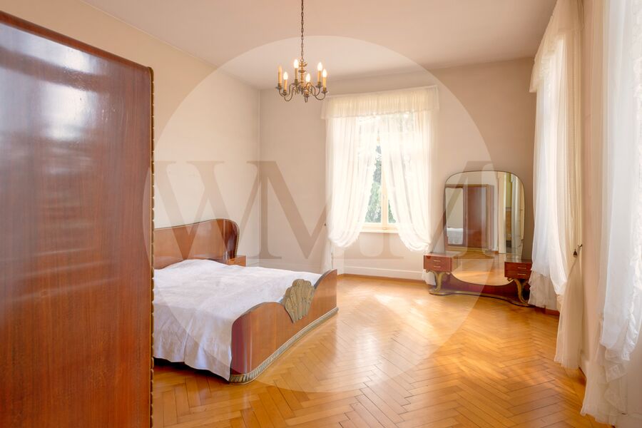 Questa splendida villa risale ai primi anni del Novecento, ha una superficie di circa 478 mq ed è immersa in un rigoglioso parco di circa 2’836 mq, ricco di meravigliose piante secolari che donano un allure d’altri tempi.