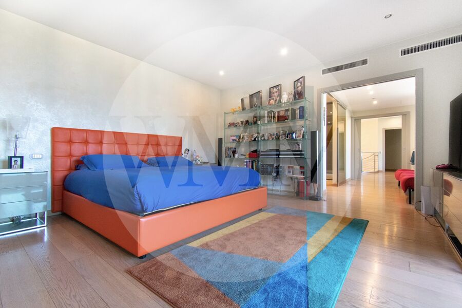 Il piano superiore è interamente dedicato alla zona notte, dove troviamo un’ampia zona master composta da camera, ampia cabina armadio e suggestivo bagno dotato di doccia e vasca freestanding, posizionata davanti alle ampie vetrate per godere appieno del panorama. Sullo stesso piano troviamo altre tre camere da letto, due bagni e un’ampia zona armadi.