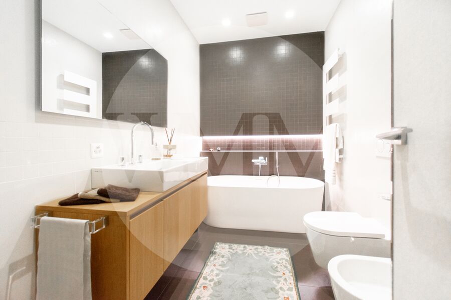 La prima camera è servita da un bagno con doccia, mentre la seconda camera dispone di un bagno con vasca, creando ambienti intimi e raffinati.