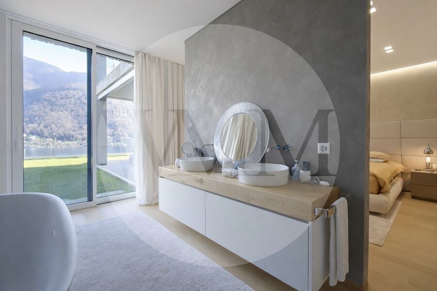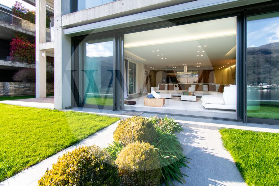 Gli spazi esterni comprendono due terrazze coperte, un ampio giardino privato e una jacuzzi panoramica che affacciano direttamente sul lago, offrendo un contesto di assoluta privacy immerso in una cornice naturale di rara bellezza.