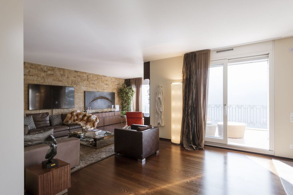 Finiture di pregio per questa lussuosa proprietà che dispone di suggestivi spazi esterni quali una grande loggia ed un terrazzo e che si completa di una bella zona wellness ad uso condominiale (piscina interna con terrazza prendisole panoramica, sauna, bagno turco e piccola area fitness).
