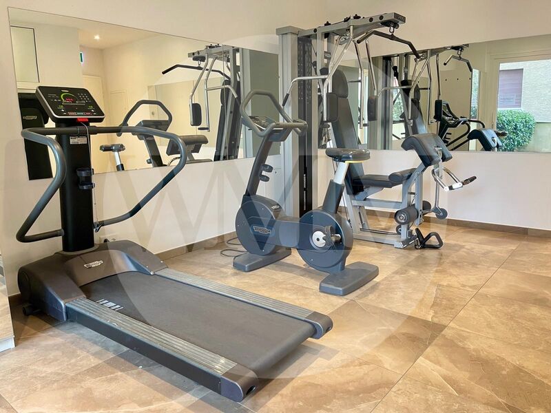 Il contesto condominiale offre spazi comuni di qualità, tra cui una sala fitness attrezzata Technogym e una sala eventi con cucina e bagno, ideali per incontri privati o momenti di convivialità.
