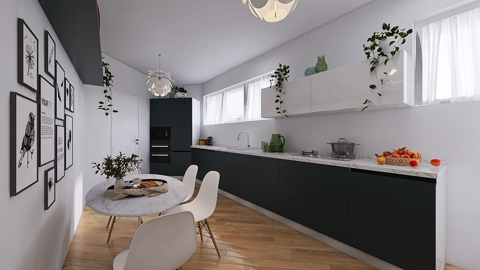 Al piano terra si sviluppa la zona giorno, caratterizzata da una cucina moderna open space, area pranzo e soggiorno. Le ampie vetrate che si affacciano sul giardino e sulla piscina rendono questi spazi particolarmente accoglienti e luminosi.