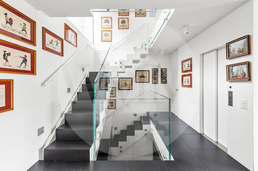 Distribuita su tre livelli oltre al piano interrato, la villa è servita internamente da un ascensore. Al piano superiore si trova l’ingresso principale con la camera padronale completa di bagno en suite, armadiature su misura, un bagno ospiti e accesso a una terrazza di circa 26 mq con vista sul verde e sul lago.