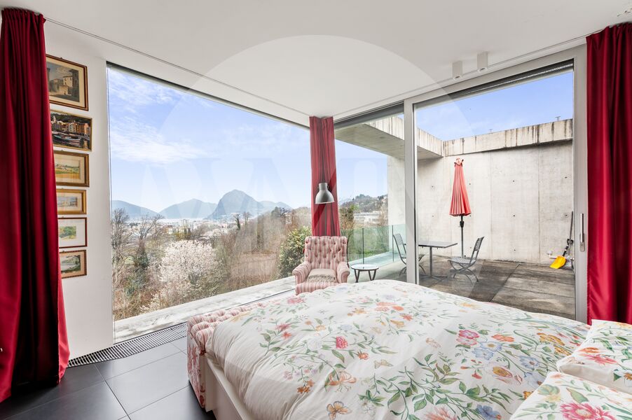 L’architettura, definita da linee pulite, cemento faccia a vista e parapetti in vetro, conferisce all’abitazione un carattere moderno ed elegante. Una residenza ideale per chi ricerca tranquillità senza rinunciare alla vicinanza ai servizi e al fascino del paesaggio luganese.