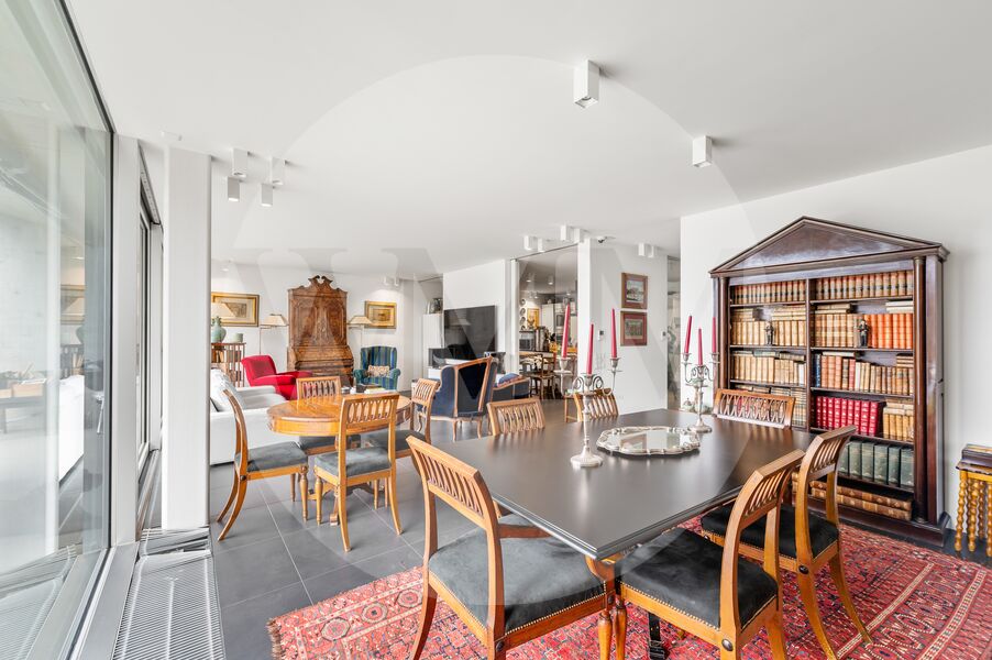 Il piano interrato include una lavanderia, un bagno turco, la cantina e il locale tecnico. Completano la proprietà quattro posti auto in autorimessa e due esterni, collocati lungo una strada privata riservata ai residenti.
